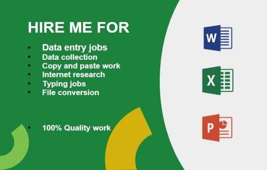 I will enter upto 100 entries accurately into excel or google sheets . | I will enter upto 300 data entries with formatting and basic data cleanup | "I will deliver up to 700 data entries with formatting, validation, and error checking. | |
